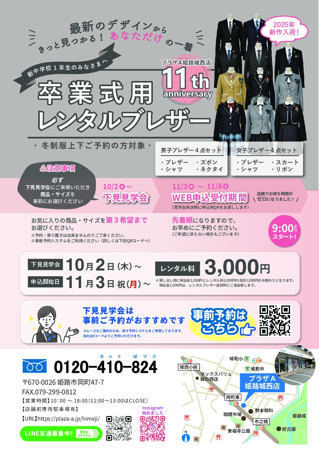 【プラザA姫路城西店】卒業式用レンタルブレザー下見会開催中❢❢